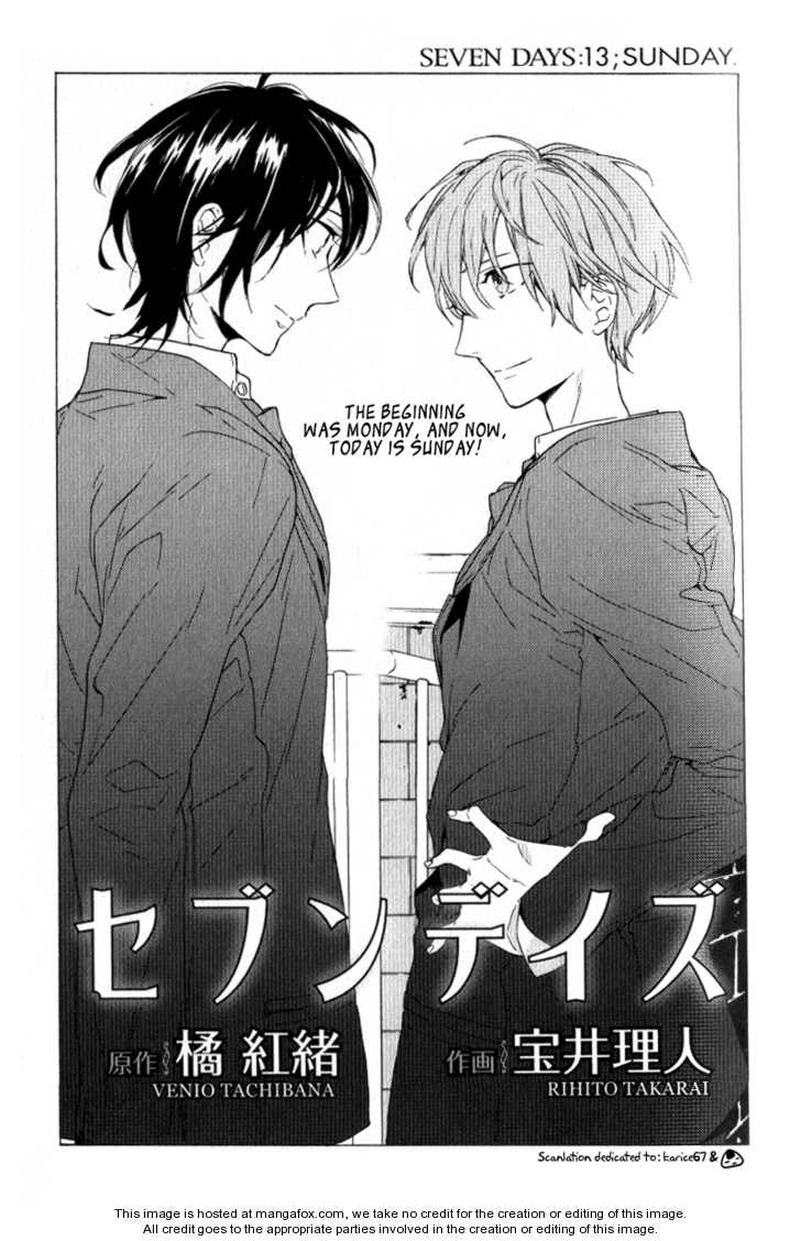 Seven Days presenta dos personajes masculinos muy distintos entre si, quienes inicialmente se acercan el uno al otro por mera curiosidad y quizás con la esperanza de contagiarse de algo de la "perfección" que ambos creen percibir en el otro.